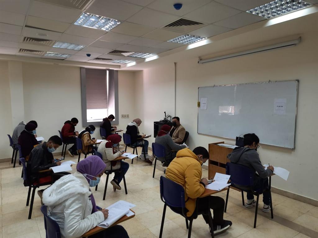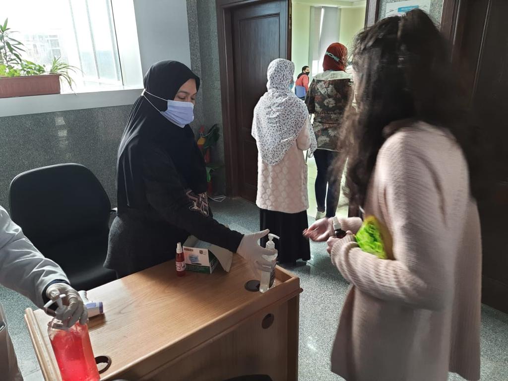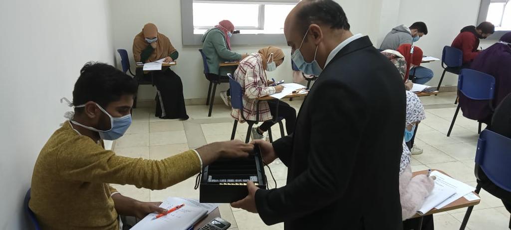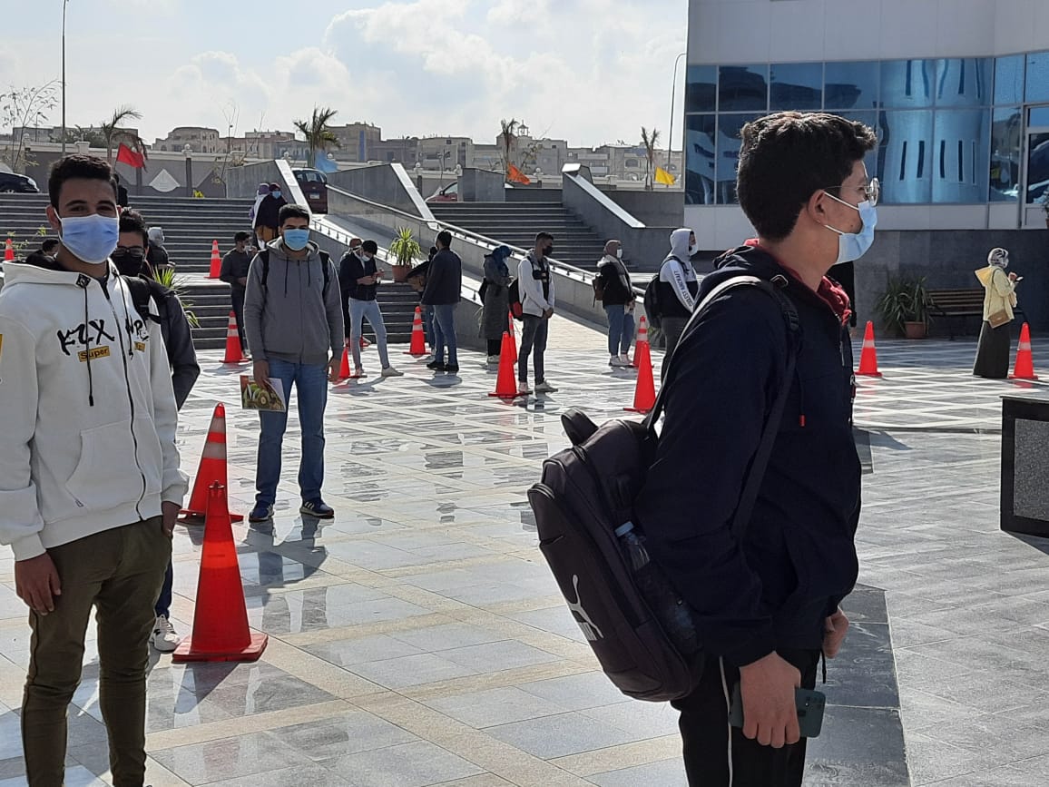 وشهد دخول طلاب برنامجى الميكروبيولوجى والنانو تكنولوجى الاصطفاف فى ثلاثة مسارات بمسافات آمنة بين الطلاب حفاظا على الإجراءات الوقائية والتباعد الاجتماعى، إلى جانب تواجد أجهزة قياس درجة الحرارة للطلاب قبل دخول لقاعات الامتحانات، مع توفير معقمات كحولية وكمامات للطلاب تم توزيعها على الطلاب، مع احترام مبدأ التباعد الاجتماعي داخل وخارج قاعات الامتحان.